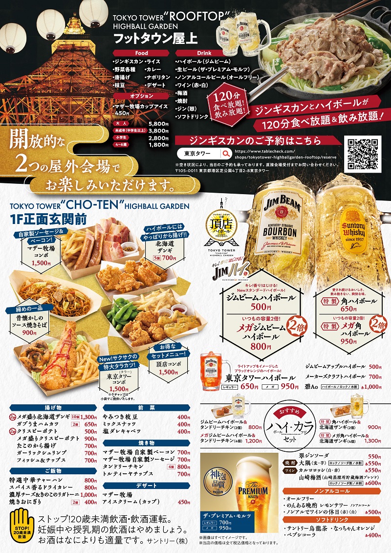 | 預約 | https://www.tablecheck.com/shops/tokyotower-highballgarden-rooftop/reserve |