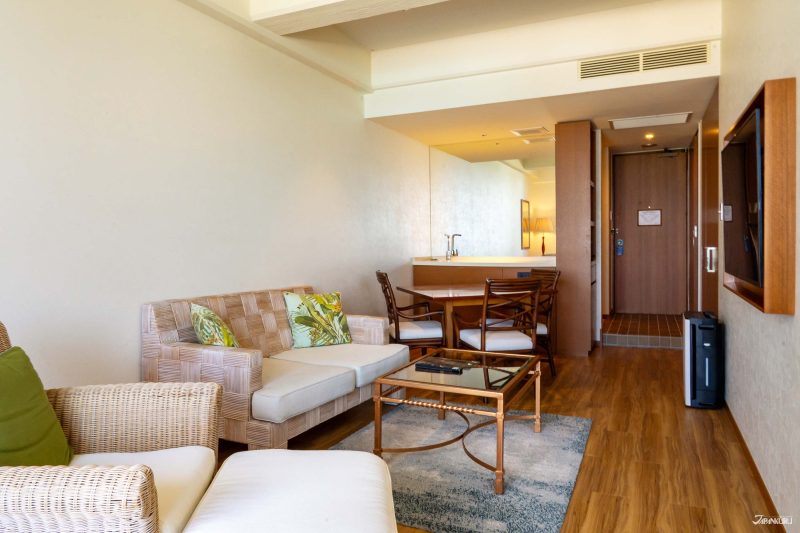 Rooms also include a kitchen and dining area, which are rare additions at resorts, much more typically seen in apartments or shared accommodations. Having such practical amenities in a resort setting is a real draw, especially helpful for long stays, or families traveling with children.