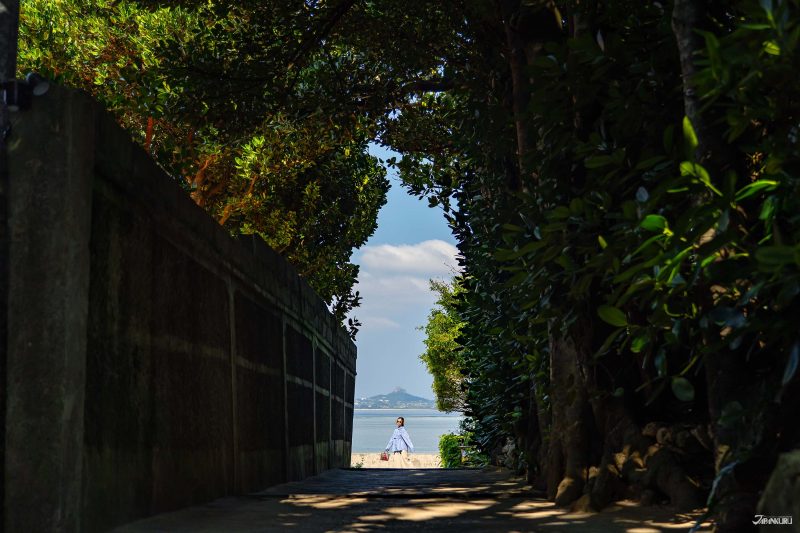 Rows of “fukugi” trees, also known as “happiness trees,” line both sides of the road, and the centuries-old trees forming a lush green tunnel that feels like a portal into another world. The soft sunlight filtering through the leaves and the gentle sound of rustling foliage create a soothing atmosphere, the kind you’ll want to enjoy with all your senses, as you take your time beneath the canopy.