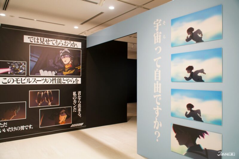 Viewers will know that part of the appeal of Mobile Suit Gundam GQuuuuuuX emerges from the complicated relationships that evolve between the protagonists Amate (Machu), Nyaan, and Shuji. Not only do the gallery walls within the exhibition highlight the raw emotions of their character arcs, but realistic physical recreations of the animated settings make it feel like you could walk right into a scene from the anime!