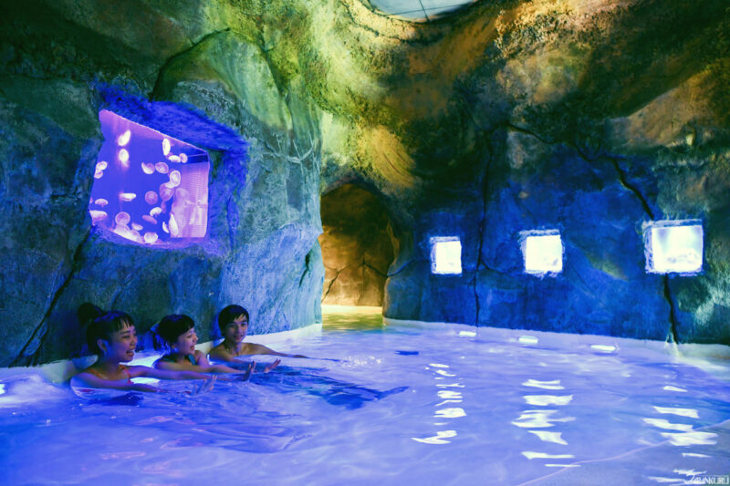 For a uniquely Japanese swimming experience, Hakone Kowakien Yunessun blends waterpark fun with traditional onsen hot spring culture, which has helped make it one of Japan’s most viral swimming spots. Nestled in the scenic Hakone area, an easy train trip from Shinjuku, Yunessun offers bathing suit-friendly onsen attractions (a rare option in Japan), making it ideal for families and travelers looking to dip into Japanese culture without stripping down. Check out the indoor and outdoor pools with jungle gym areas, and do not miss out on Yunessun’s famous themed “flavor” baths made using real ingredients, like red wine, green tea, and sake!