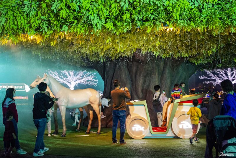 Japan’s “illumination” events are breathtaking light displays that often eclipse the holiday lights found in other parts of the world – generally open from late fall to early spring so the lights can sparkle in the cold air. The events are held across the country, employing a wide variety of themes, but one of the most popular illuminations in all of Japan takes place at Tokyo’s very own Oi Racecourse! TOKYO MEGA ILLUMI, as it’s called, is open on cold-weather days when there are no horse races, and the event uses 8 million lights to take over 260,000 m2 (64 acres) of racetrack grounds every year. Along with the neon and flowery tunnels of light, there are horse-themed photo spots using life-size plastic horses (including a “horse-drawn” carriage), parades full of real horse participants, and even opportunities to pet and take photos with tiny mini-horses. Fun for all ages, it’s a great way to embrace the first few weeks of the Year of the Horse!