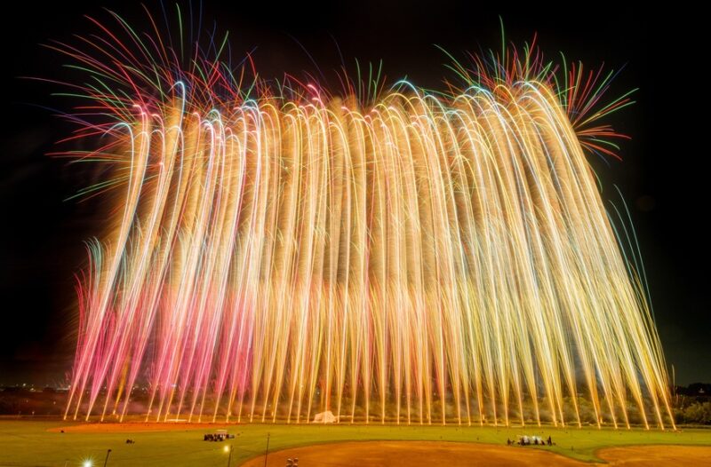 이 대회의 가장 큰 매력은 불꽃이 터지는 장소가 관람석과 정말 가깝다는 점! 불꽃이 밤하늘을 가르며 터질 때, 눈으로 보는 화려한 색감은 물론, 온몸으로 전해지는 진동과 소리까지 느껴지니 마치 불꽃 속에 들어와 있는 듯한 생생한 기분을 맛볼 수 있어요.