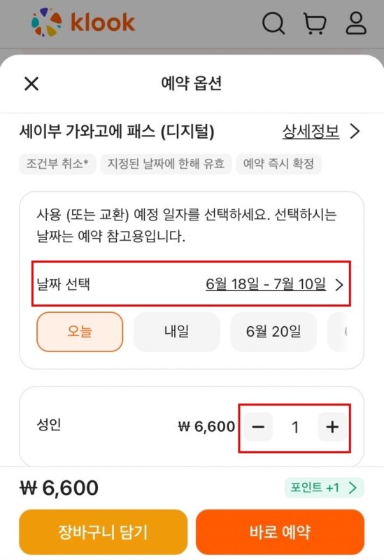 1. 옵션에서 ‘세이부 가와고에 패스 (디지털)’ 선택하기: 원하는 패스 옵션을 선택해 주세요.