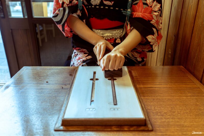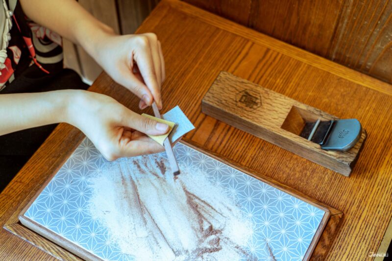 먼저 16종의 다양한 나무 중 마음에 드는 나무를 고르고, 번호 순서대로 자리에 앉아 대패로 나무를 깎는 작업을 시작합니다. (잘려 나간 나무 조각은 향을 맡으며 즐기거나 우드 디퓨저 태그처럼 업사이클 소품으로 활용할 수도 있다고 하네요.) 모양을 다듬고 마지막으로 코팅 작업을 하면 누구나 손쉽게 나만의 젓가락 완성! 완성된 젓가락은 가와고에의 상징 도키노카네 마크가 그려진 씰로 포장돼 더욱 가와고에 스러운 특별한 기념품이 완성되는데요. 보통 여행 중 체험은 오래 걸릴까봐 부담스러운 경우가 많지만 약 1시간이면 충분해서 여행 중 잠시 시간을 내 즐기기에도 딱! 선물용으로도 좋고, 이색적인 데이트 코스로도 추천하고 싶은 체험이에요.