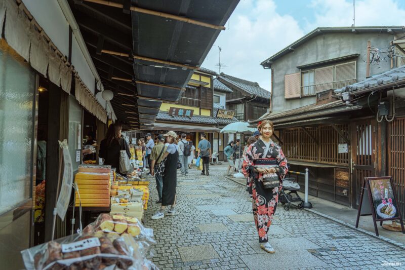 과자뿐만 아니라 옛 일본의 정취를 그대로 담은 아기자기한 상점들, 좁고 정겨운 골목길, 손글씨 간판까지 골목 자체가 포토존 그 자체! 걷기만 해도 레트로한 감성이 가득해 자연스럽게 카메라를 들게 되는 곳이니 부른 배를 잠시 소화하며 감성을 채우기에도 딱 좋은 스폿이랍니다.