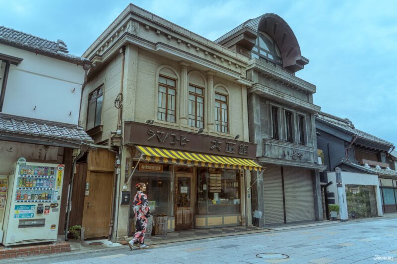 일본 전통 의상을 입고 가와고에 여행 준비를 마쳤다면, 이제 일명 낭만이 깃든 거리 ‘다이쇼 로망 유메도리’로 떠나볼 차례! 이곳은 일본 다이쇼 시대(1912~1926)의 레트로한 무드와 낭만이 가득한 곳으로, 근대 서양식 건축과 전통 일본식이 절묘하게 어우러진 독특한 거리로 유명합니다.