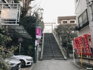 สำหรับที่ตั้งของศาลเจ้า อยู่บริเวณสวนอุเอโนะ เดินประมาณ 15 นาทีเท่านั้น เมื่อเห็นบันไดสูง ๆ ก็เตรียมคำอธิษฐานไว้รอขอพรได้เลย!