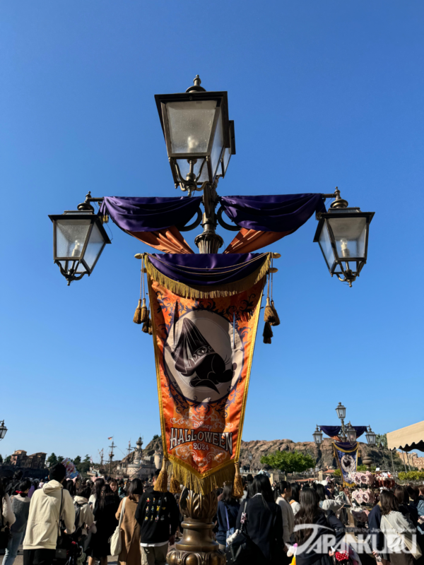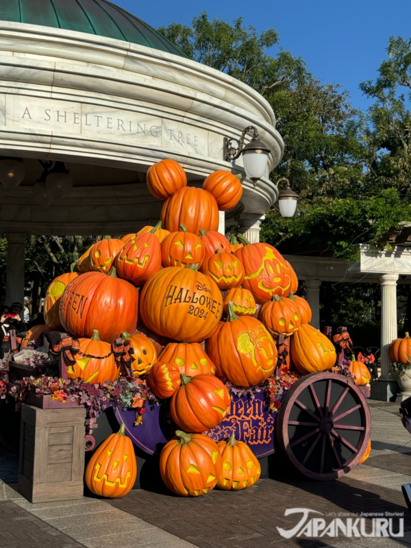 ในช่วงฮาโลวีน ป้ายทางเข้าก็จะระบุว่าเป็น Disney Halloween และยังมีการตกแต่งรอบสวนด้วยฟักทอง และธงลายฮาโลวีน นอกจากนี้ยังมีเมนูพิเศษ และกู๊ดส์พิเศษช่วงฮาโลวีนด้วยค่ะ