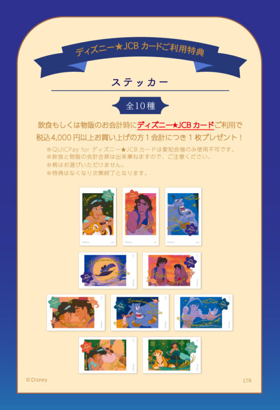 - ตอนชำระเงินที่คาเฟ่ ถ้ามียอดใช้บริการมากกว่า 4,000 เยน และจ่ายด้วยบัตร Disney ★JCB Card จะได้รับสติ๊กเกอร์สุ่มลาย 1 ชิ้นฟรี