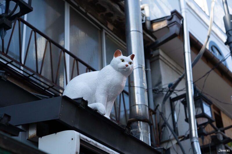และถ้าใครเป็นทาสแมว เตรียมสนุกได้เลยค่ะ! เพราะที่ย่านนี้มีรูปปั้นแมวตัวเล็กใหญ่ซ่อนอยู่ตามมุมต่าง ๆ ทั้งบนป้ายร้านค้า กำแพง หรือขอบหน้าต่าง เป็นกิมมิคเล็ก ๆ ให้ได้ลองเดินหาเพลิน ๆ ระหว่างเที่ยว