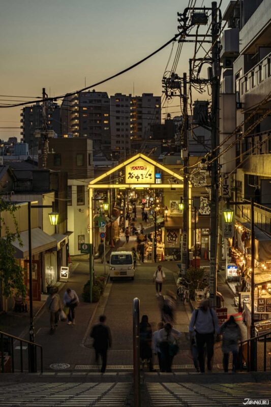 ถนนสายเล็กที่อบอวลไปด้วยเสน่ห์ของโตเกียวในยุคเก่า เต็มไปด้วยร้านอาหาร ขนม ของฝากน่ารัก ๆ และสินค้าที่เกี่ยวกับแมว เปิดมาตั้งแต่ช่วงยุค 50’s โดยอาคารไม้เก่าทั้งสองฝั่งถนนได้รับการปรับปรุงให้กลายเป็นร้านค้าต่าง ๆ แต่ยังคงรักษากลิ่นอายญี่ปุ่นแบบดั้งเดิมเอาไว้อย่างชัดเจน เดินเล่นไปเรื่อย ๆ จะรู้สึกเหมือนย้อนเวลากลับไปอยู่ในช่วงรอยต่อระหว่างอดีตกับปัจจุบัน