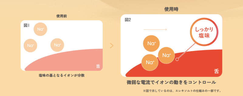 โดยปกติแล้วในอาหารทั่วไป ไอออนโซเดียม (Na+) ซึ่งเป็นตัวสร้างรสเค็ม จะกระจายตัวในปาก บางครั้งกระจายไม่ทั่วถึง ลิ้นอาจไม่รับรสเค็มบางส่วน แต่เมื่อใช้ช้อนหรือถ้วยนี้ อุปกรณ์จะส่งกระแสไฟฟ้าอ่อน ๆ ผ่านอาหารไปยังรอบ ๆ ลิ้น ซึ่งกระแสไฟฟ้าจะเป็นตัวควบคุมการเคลื่อนไหวของไอออน ทำให้โซเดียมถูกดึงเข้าหาลิ้น ผลลัพธ์คือรสเค็มและรสอูมามิของอาหารเพิ่มขึ้นตามไปด้วย ทำให้รู้สึกเค็มขึ้นแม้ใช้เกลือน้อยลง