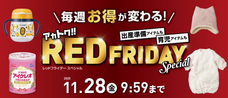 สำหรับคุณพ่อคุณแม่หรือของขวัญเด็ก ๆ Akachan Honpo เป็นร้านยอดนิยมสำหรับสินค้าทารก เด็ก และคุณแม่ โปรโมชั่น “Red Friday” ครอบคลุมตั้งแต่ผ้าอ้อม นมผง ไปจนถึงรถเข็นและคาร์ซีท