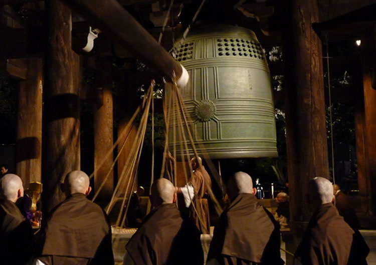นอกจากจะร่วมวงทานโซบะส่งท้ายปีแล้ว ยังมีอีกหนึ่งกิจกรรมที่คนญี่ปุ่นนิยมทำกันก็คือนั่งฟังระฆังส่งท้ายปี ในคืนวันสิ้นปี วัดต่าง ๆ ทั่วประเทศญี่ปุ่น จะตีระฆังทั้งหมด 108 ครั้งตั้งแต่ช่วงเที่ยงคืนเป็นต้นไป บางครอบครัวออกไปวัดเพื่อชมพิธีตรงหน้า หรือบางครอบครัวก็ชมถ่ายทอดสดจากหน้าจอ