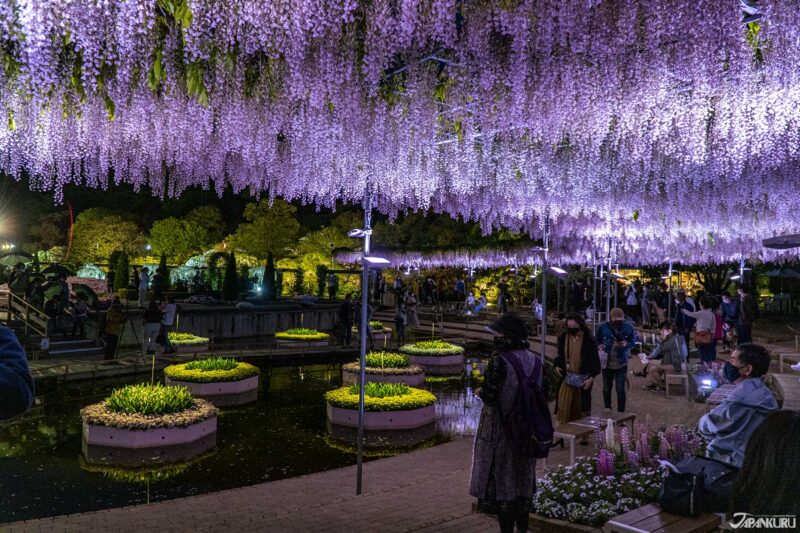 หากพูดถึงฤดูใบไม้ผลิของญี่ปุ่น หลาย ๆ คนคงคิดถึงซากุระ แต่จริง ๆ แล้วใบไม้ผลิไม่ได้มีแค่เจ้าซากุระนะ เพราะที่สวนอาชิคากะช่วงใบไม้ผลิคือสวรรค์สีม่วงของแท้! เพราะเราจะได้พบกับ อุโมงค์ดอกวิสทีเรียสีม่วง ยาวกว่า 80 เมตร และไฮไลต์คือต้นวิสทีเรียยักษ์อายุ 150 ปีที่โรงระย้าลงมาอย่างสวยงามราวกับฉากในเทพนิยาย ยิ่งตอนกลางคืนที่มีจัดไลท์อัปคือโรแมนติกสุด ๆ แนะนำสำหรับคนรักดอกไม้