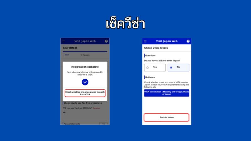 เนื่องจากปัจจุบันญี่ปุ่นฟรีวีซ่าท่องเที่ยว 15 วันสำหรับนักท่องเที่ยวชาวไทยแล้ว ดังนั้นไม่จำเป็นต้องขอวีซ่าและไม่มีวีซ่าก็สามารถเข้าญี่ปุ่นได้ ในส่วนนี้สามารถตอบ No ได้เลยค่า หลังจากเลือกแล้วคลิก Back to Home