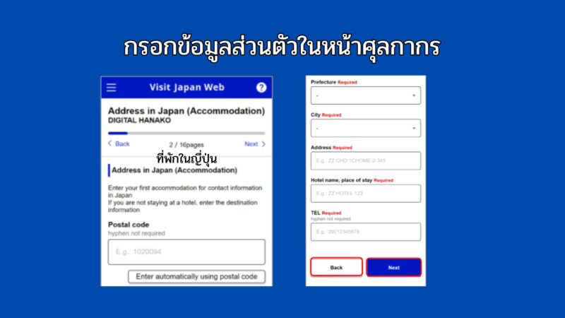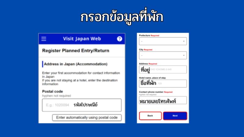 ④กรอกข้อมูลที่พัก (ถ้ามีเปลี่ยนที่พักให้กรอกที่พักของคืนแรก)