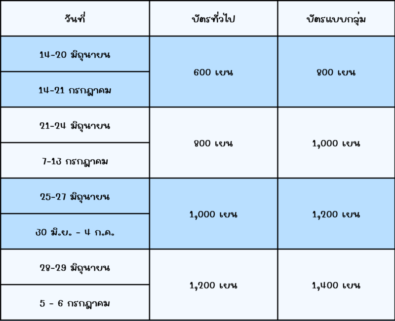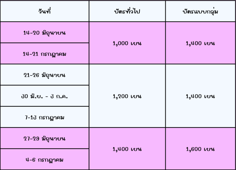 ช่วงการชมดอกไฮเดรนเยียของปีนี้จะอยู่ระหว่างวันที่ 14 มิถุนายน – 21 กรกฎาคม 2025 ค่ะ โดยค่าเข้าชมแต่ละช่วงจะแตกต่างกันตามความพีคของดอกไฮเดรนเยียที่บาน และค่าเข้าช่วงกลางวัน และกลางคืนที่มีการไลท์อัพก็ไม่เท่ากันด้วยค่ะ สามารถซื้อตั๋วได้บริเวณทางเข้าเลยนะคะ