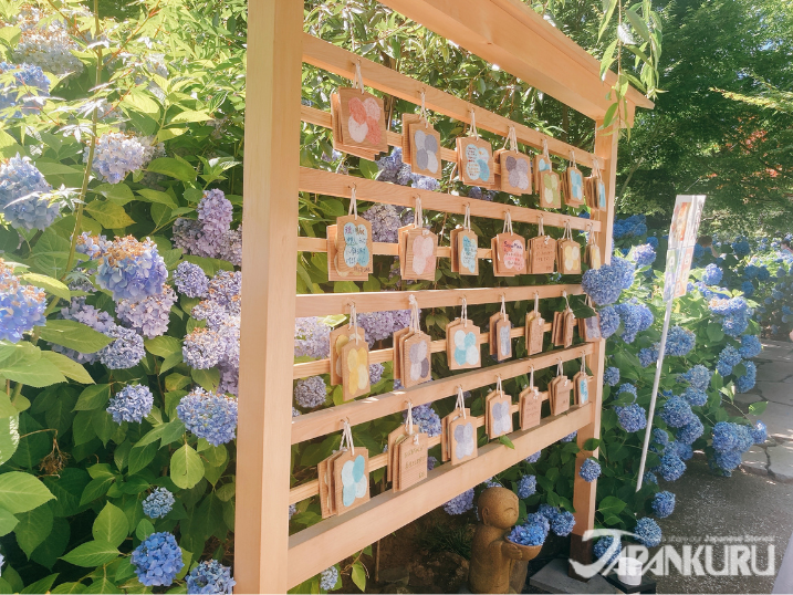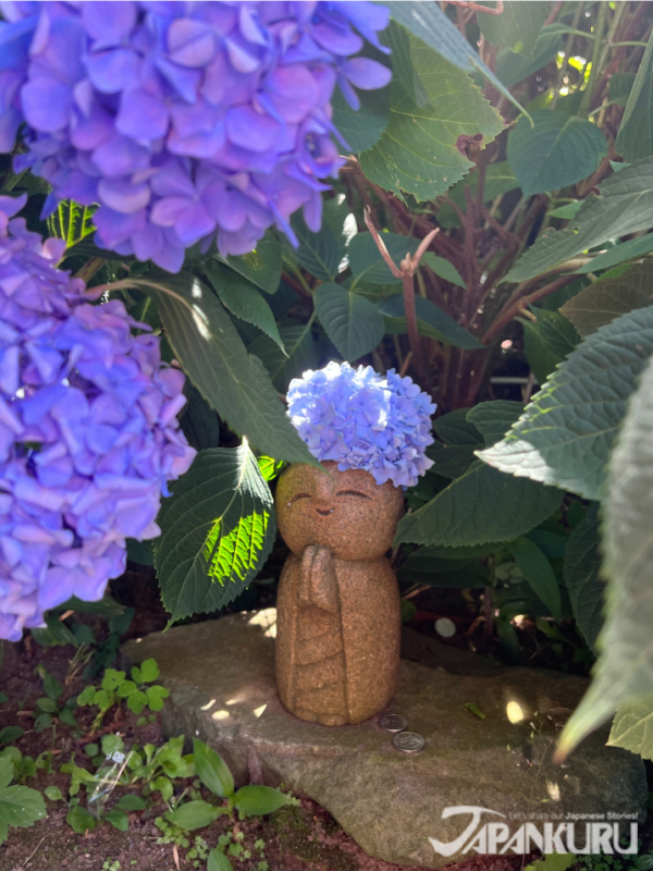 อีกอย่างที่น่ารักคือในวัดมีจิโซ หรือรูปปั้นพระพุทธรูปขนาดเล็กเยอะมากเลยค่ะ บางจุดก็มีการประดับเครื่องหัวด้วย นอกจากนี้ในวัดมีก้อนหินที่เป็นรูปหัวใจซ่อนอยู่ด้วยนะคะ (กระซิบว่าบ่าวสาวคนญี่ปุ่นเขามาจองถ่ายพรีเวดดิ้งกับทางวัดเยอะมากค่ะในช่วงที่ดอกไฮเดรนเยียบาน)