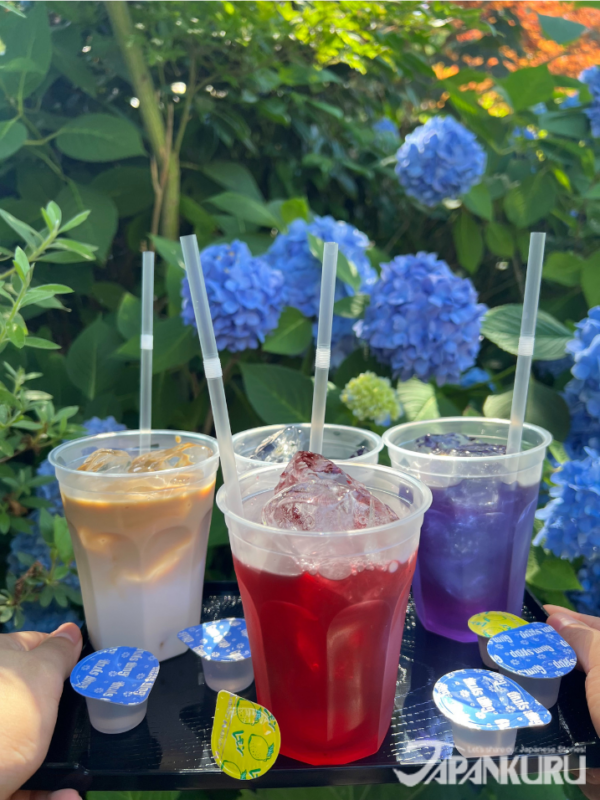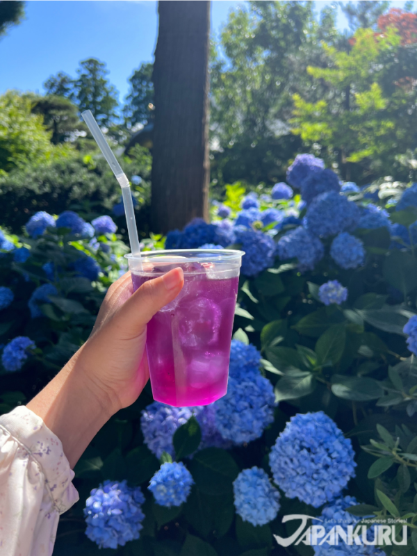 ที่นี่มีคาเฟ่น้ำให้สั่งด้วยนะคะ ซึ่งไฮไลท์คือ Ajisai Tea หรือถ้าเรียกแบบภาษาบ้าน ๆ ของเราคือ ชาอัญชันมะนาวนั่นเองค่ะ คนญี่ปุ่นสั่งเยอะมาก ๆ เพราะว้าวกันค่ะที่น้ำเปลี่ยนสีได้