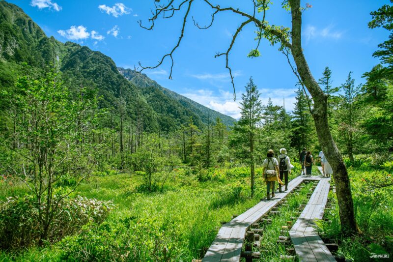 ถึงจะเป็นหน้าร้อน แต่เพราะล้อมรอบด้วยป่าเขา ทำให้รู้สึกเย็นสบายตลอดวัน อุณหภูมิประมาณ 15–25°C คนญี่ปุ่นเองก็นิยมหนีมาพักร้อน เดินป่าขึ้นเขากันที่คามิโคจิในช่วงนี้ เรียกว่าเป็นอีกหนึ่งฤดูพีคของคามิโคจิเลย