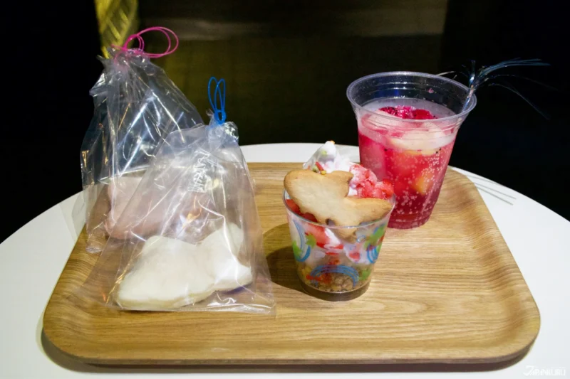 ร้านนี้ขึ้นชื่อเรื่องขนมครอฟเฟิลอบใหม่อยู่แล้ว และได้เพิ่มเมนูพิเศษที่ได้แรงบันดาลใจมาจาก “โซดาปราณวารี” ของคามาโดะ ทันจิโร และ โทมิโอกะ กิยู และ “ชาปราสาทไร้ขอบเขต” ที่ถ่ายทอดบรรยากาศจากในเรื่องออกมาได้อย่างมีเอกลักษณ์