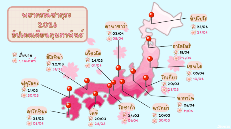 อีกไม่กี่เดือนก็จะเข้าสู่ช่วงฤดูใบไม้ผลิของญี่ปุ่นแล้ว และแน่นอนว่าสิ่งที่ทุกคนกำลังรอคอยก็คือพยากรณ์ซากุระ! สำหรับปี 2026 นี้ ซากุระญี่ปุ่นจะบานเมื่อไร ไปดูซากุระที่ไหนดี วันนี้ JAPANKURU เอาอัปเดตล่าสุดมาให้ทุกคนเตรียมวางแผนกัน!