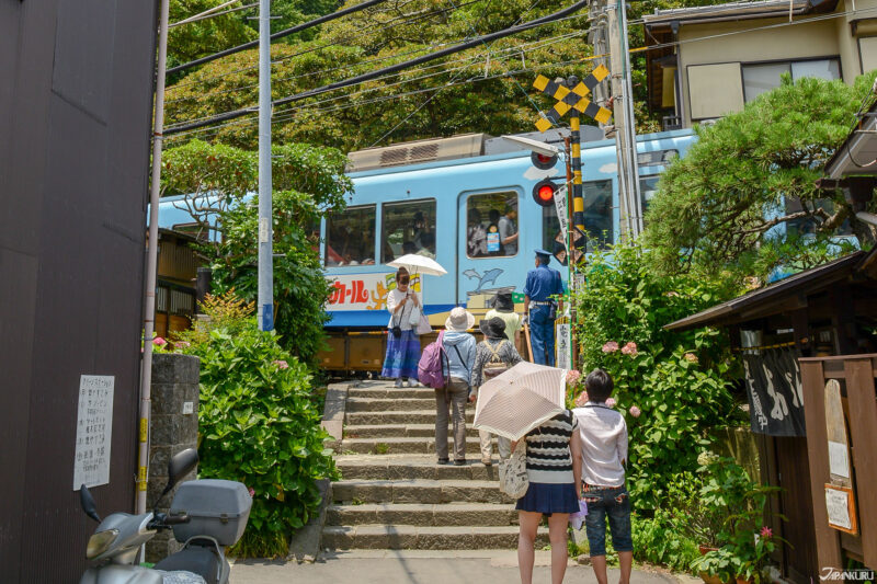 รถไฟเอโนะเด็น(Enoden Line) เป็นรถไฟท้องถิ่นที่วิ่งเชื่อมคามาคุระกับเอโนะชิมะ สองข้างทางเต็มไปด้วยบ้านเรือน ร้านค้า และตรอกเล็ก ๆ ที่มีเอกลักษณ์เฉพาะตัว ด้วยความที่รถไฟวิ่งช้า ทำให้ได้ซึมซับบรรยากาศเมืองชายฝั่งแบบสบาย ๆ ไม่เร่งรีบ เหมือนจังหวะของเรื่องราวในซีรีส์