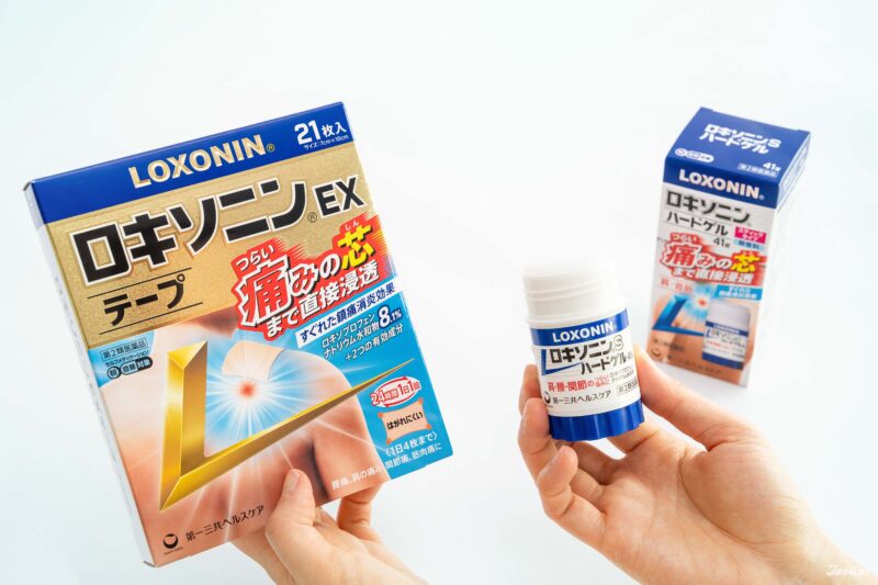 第一三共的LOXONIN鎮痛消炎外用藥系列,是可以輔助緩和這類痠痛而開發出來的,主要含有「洛索洛芬鈉水合物」成分,可起到鎮痛消炎的作用。它主要分為三個系列——LOXONIN EX、LOXONIN S及LOXONIN S溫感系列。LOXONIN EX系列主打可以快速鎮痛,LOXONIN S則是基礎的鎮痛消炎,LOXONIN S溫感則是加入了能促進血液循環的溫感成分,以藉此緩和疼痛。