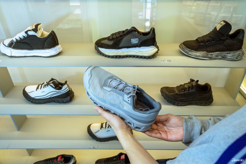 同樣位於二樓,稍微往旁邊移動,就能看到一面陳列著來自日本與歐美高人氣機能系潮鞋品牌的鞋牆,風格與實穿性兼具。來自日本的「Maison MIHARA YASUHIRO」以鞋底如同融化般不規則的「溶解鞋」聞名,展現出強烈個性與手工解構感;瑞士機能品牌「On」則以輕量結構與科技鞋底著稱,設計低調卻富有未來感。而來自美國的戶外鞋代表「KEEN」,融合了涼鞋與包覆鞋款的特性,可在陸地與水域活動間自由切換,主打貼合腳型的舒適結構與優異抓地力,深受喜愛探險與機能混搭風格的族群喜愛。