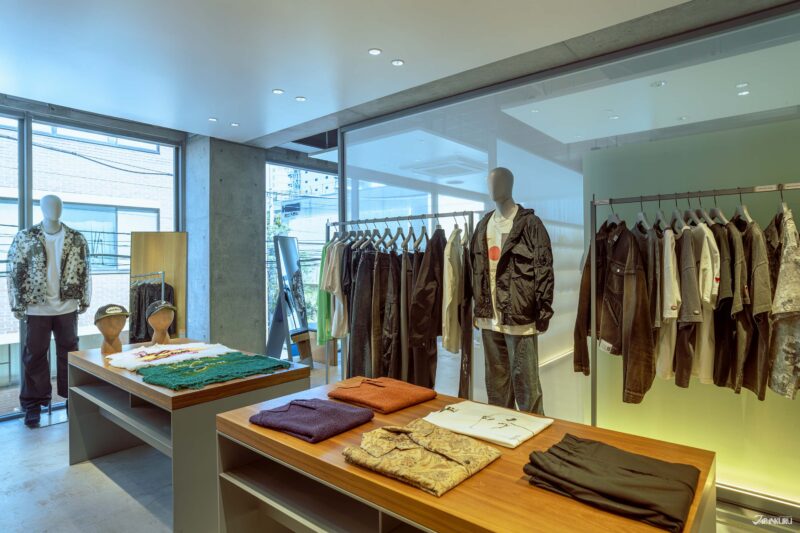 LOVELESS青山店為兩層樓設計:一樓是剛剛介紹過的咖啡空間與女裝區,整體氛圍明亮舒適;二樓則為男裝區,不過這裡不僅限於男性,對於喜愛中性風格的女性來說同樣充滿挖寶樂趣。另外也有豐富的球鞋區,對喜愛機能與休閒風格的穿搭族群來說,絕對值得一逛。