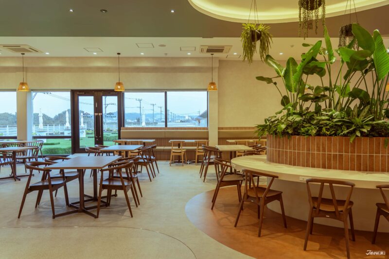 這裡提供多樣化的座位選擇,包括寬敞的開放式座椅、舒適的和式坐區,甚至還有戶外草皮用餐區。現場也貼心設有兒童安全座椅與嬰兒車停放區,是一個非常親子友善的用餐空間。