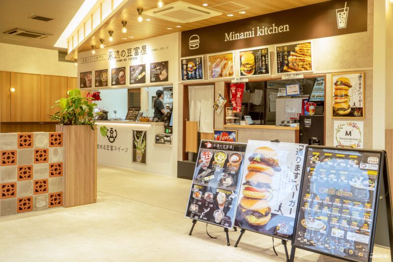 - Minami kitchen:是一家專賣漢堡與三明治的店鋪,採用Motobu牛(もとぶ牛)、Kibimaru豬(きびまる豚)、Aasa牛(アーサ牛)等沖繩在地嚴選食材,講究手工現做與風味層次。漢堡肉可依食量選擇1至3片,一口咬下,肉汁四溢、香氣撲鼻,完整展現了沖繩食材的魅力。