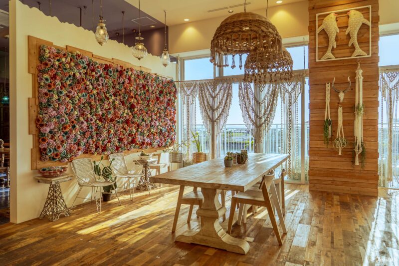 溫暖明亮的「加州海岸風」空間,以木質地板與滿牆鮮花營造出放鬆氛圍,適合親子與朋友聚餐;「異國宮廷風」區域則結合金屬吊燈與雕花木椅,展現神祕浪漫;而「秘密花園風」則以垂掛藤蔓與紅磚牆打造出歐洲街角的夢幻氛圍,讓人彷彿置身童話場景。