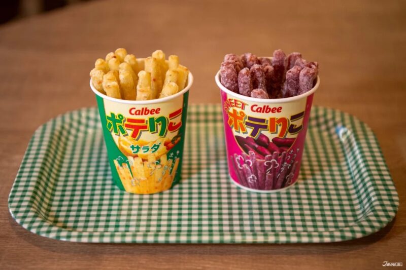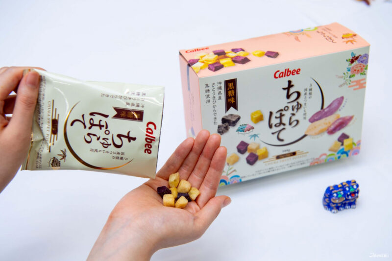 說到零食界的霸主,還有另一位你不可不知的就是「Calbee」啦!位於國際通的Calbee+沖繩店,販售現炸手工薯條,外酥內鬆超涮嘴,特別推薦沖繩限定的紅芋紫薯口味,鹹甜交織、香氣濃郁,是旅人(與鴿子?)最愛的小吃之一。