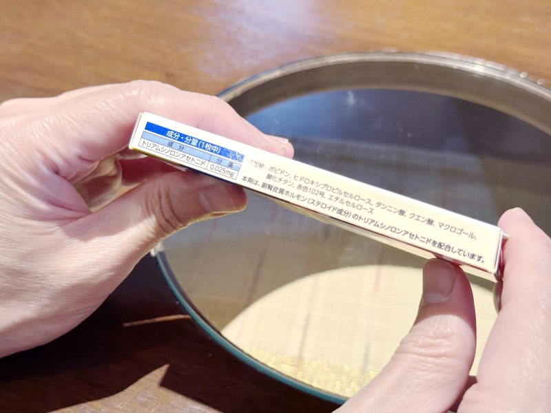 從成分表來看,「TRAFUL口內炎貼片a」的有效成分極為單純,就只有「曲安奈德」(Triamcinolone Acetonide)一種。這是一種藥物作用相對強效的人工皮質類固醇,具備優秀的消炎、抗過敏以及免疫抑制作用。在醫療現場當中,通常以外用藥型態用於濕疹,或是以注射劑型態用於關節炎。不過因為有助於支持患部恢復,所以也被製作成口腔軟膏或口內貼片,用來支持患部恢復。