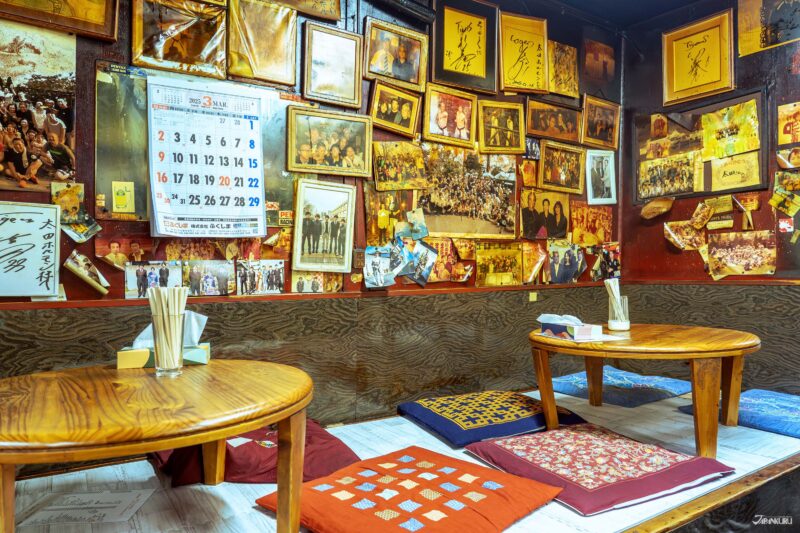 一天的旅程即將結束,怎能少了美食作為完美收尾?我們選擇了當地也非常有人氣的昭和風居酒屋「太田HORUMON」。店內不僅瀰漫著炭火燒肉的香氣,牆上還掛滿店主一家與名人的合照,泛黃的老照片與榻榻米座位更添懷舊味。