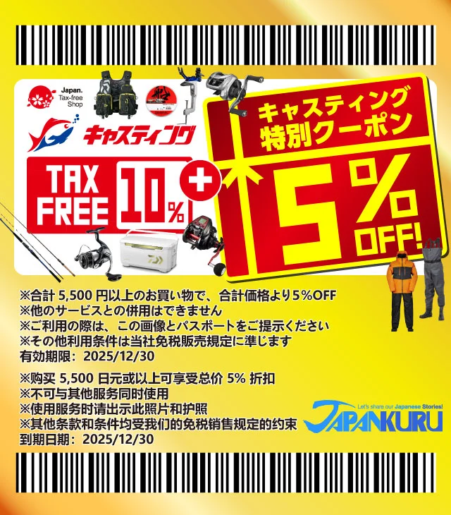 日本钓具专门店Casting免税10%+95折