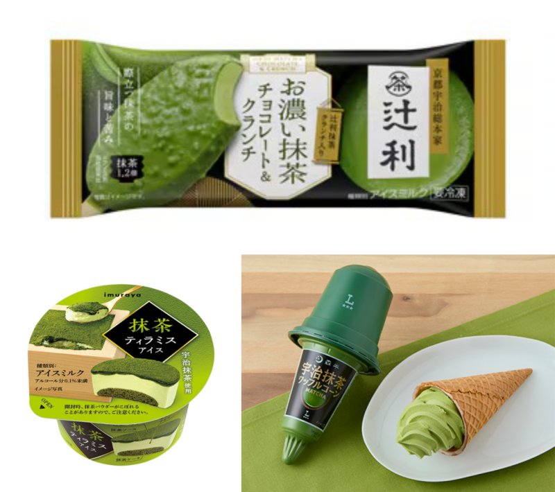 图片来源 下左:全家 抹茶提拉米苏 / 下右:LAWSON 森半宇治抹茶甜筒