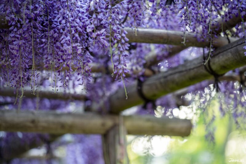 但也别太过可惜,日本能赏的花可不只有樱花而已。樱花花期一过,接着就是「紫藤花」登场的时候。一串串垂挂的紫藤花,交织成梦幻的花帘,美得令人陶醉。